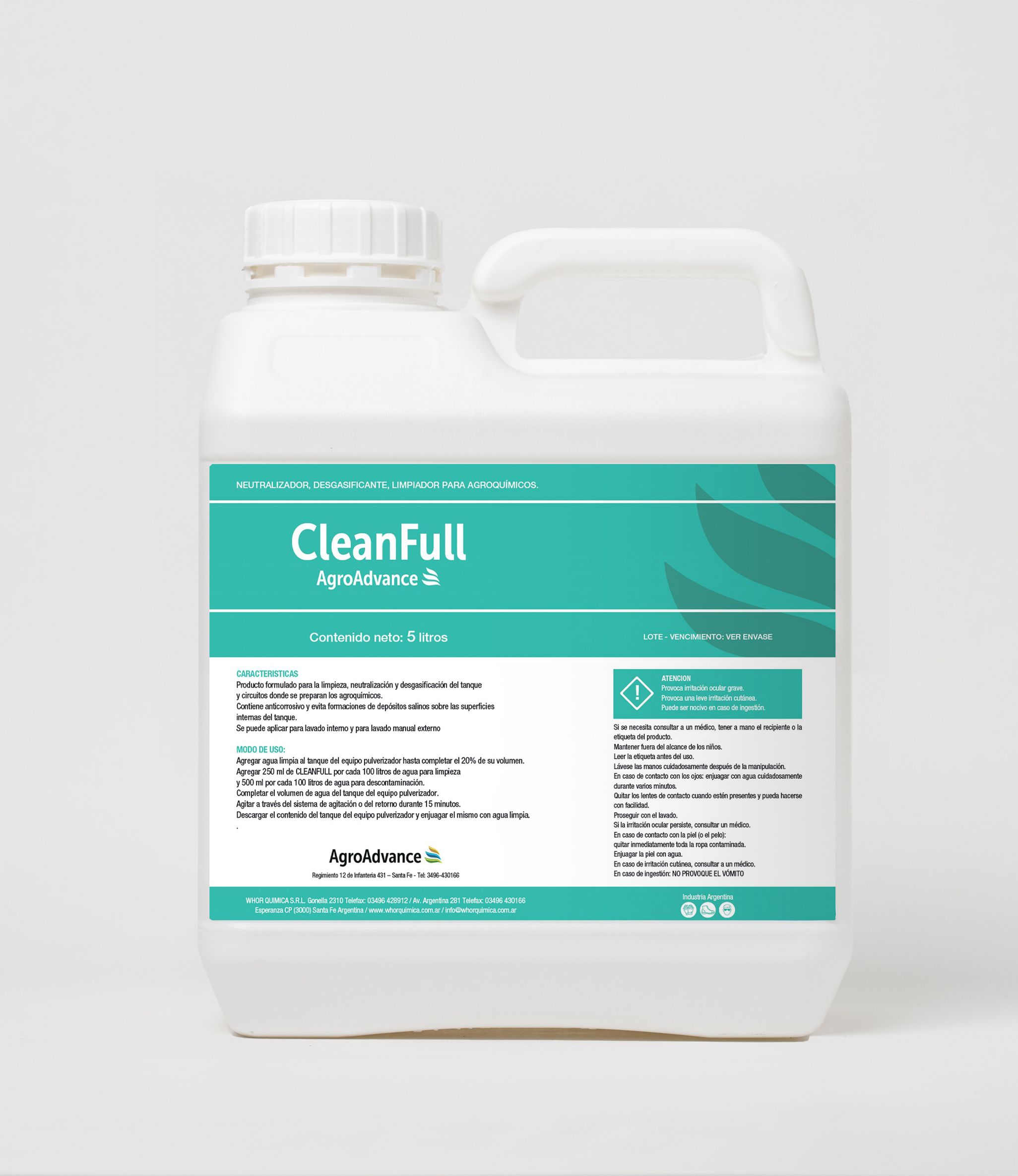 - Agregar 250 ml de CLEANFULL por cada 100 litros de agua para limpieza