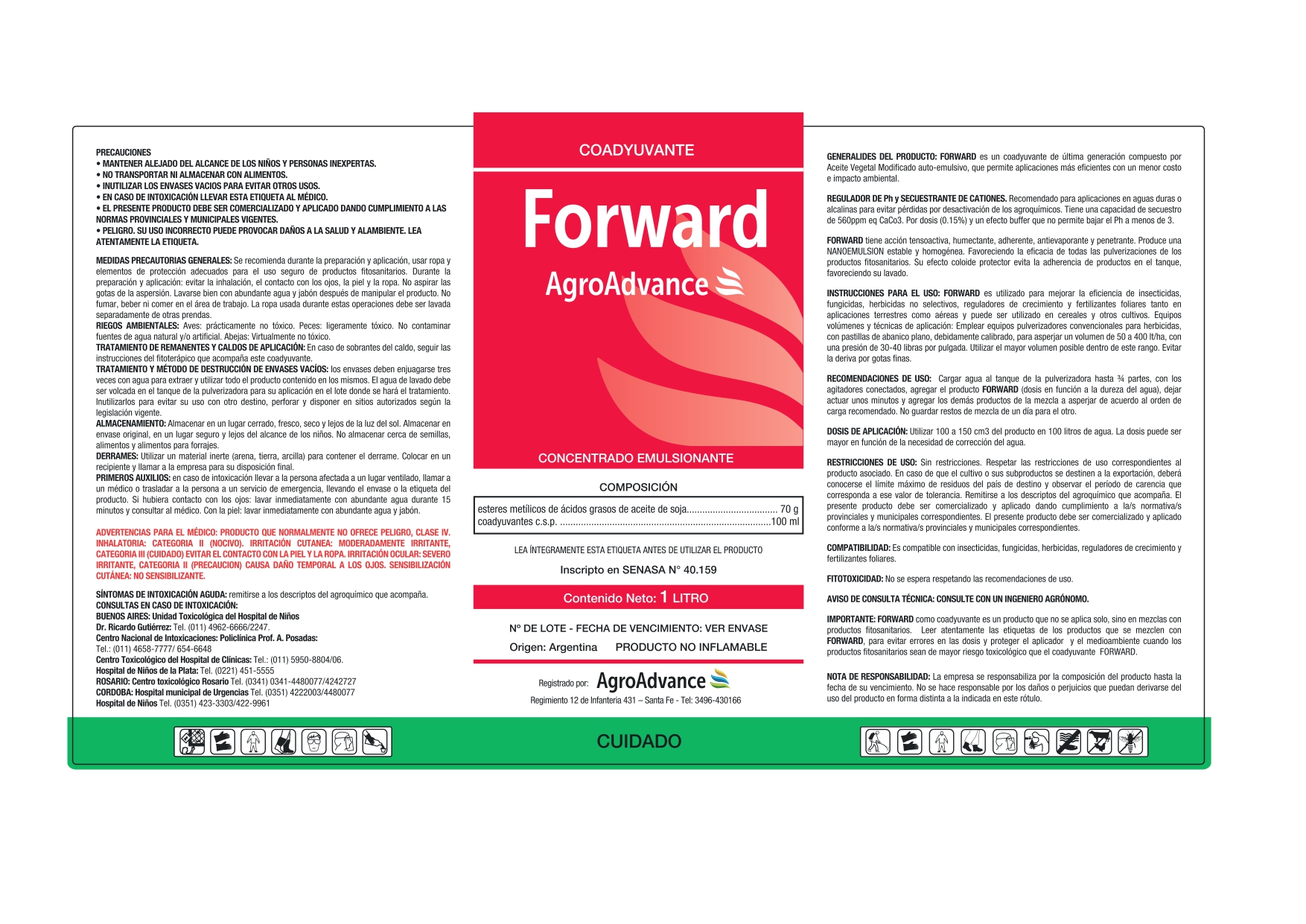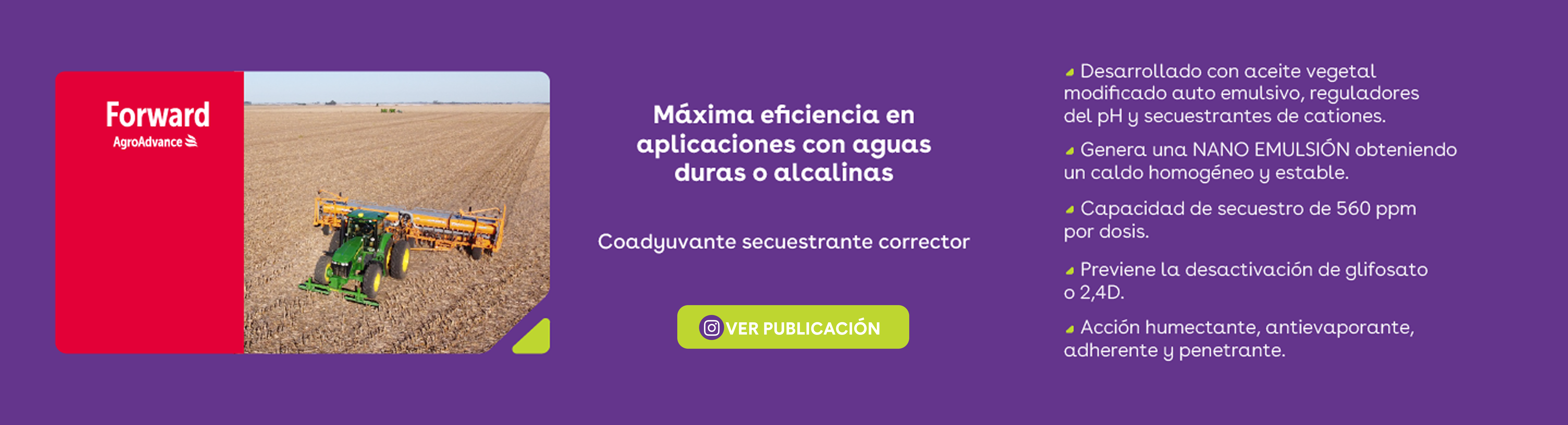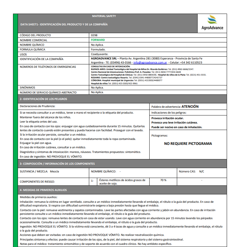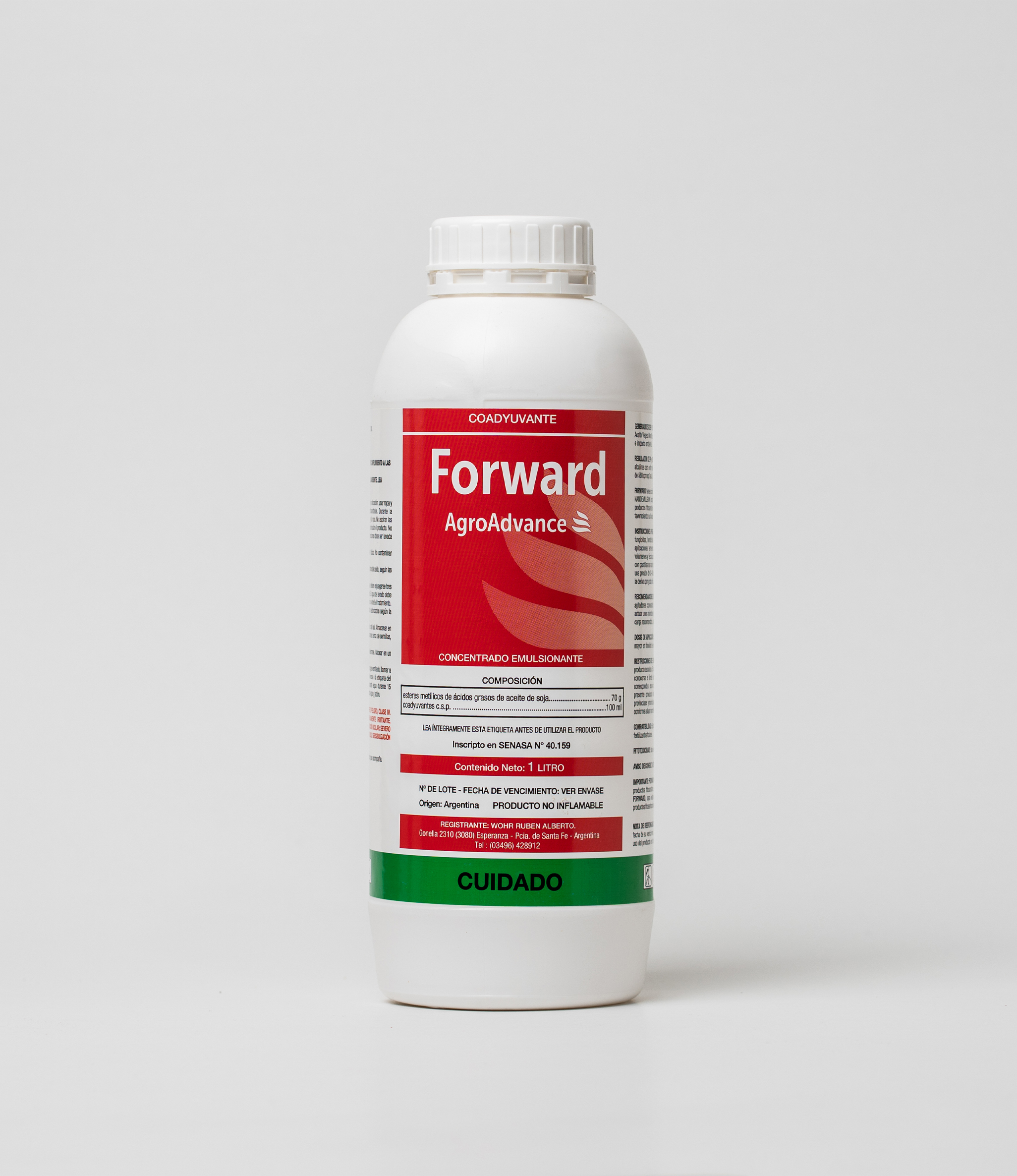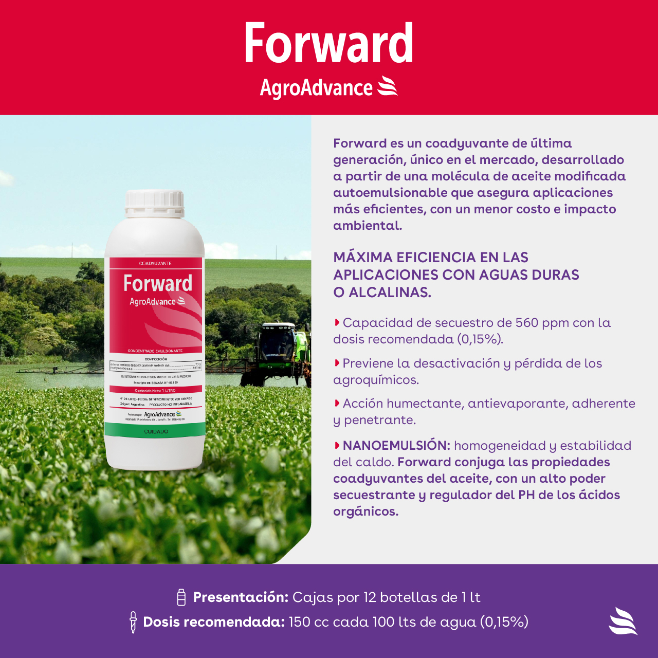 - FORWARD es un coadyuvante de última generación compuesto por Aceite Vegetal Modificado auto-emulsivo, recomendado para aplicaciones con aguas duras por su alto poder secuestrante y corrector de pH