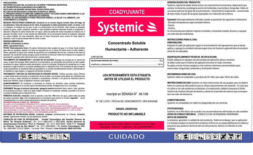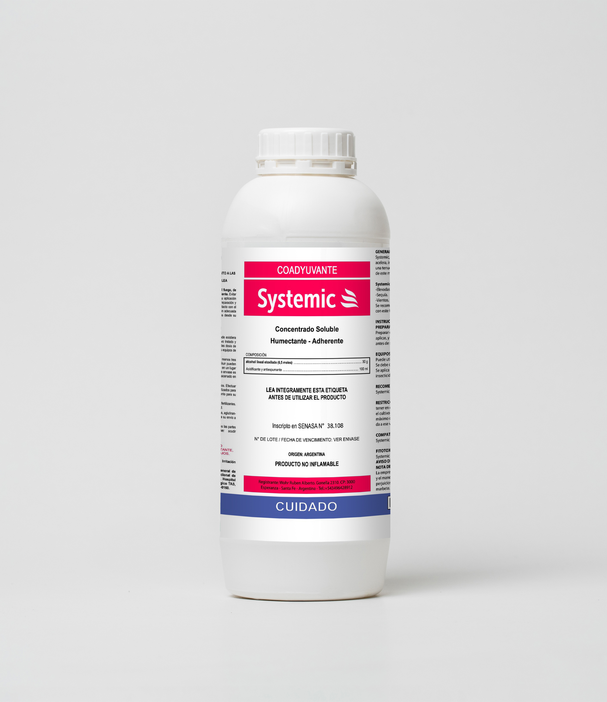 - SYSTEMIC es Tensoactivo, humectante, que acelera incrementa y prolonga la acción de los herbicidas, insecticidas y fungicidas.