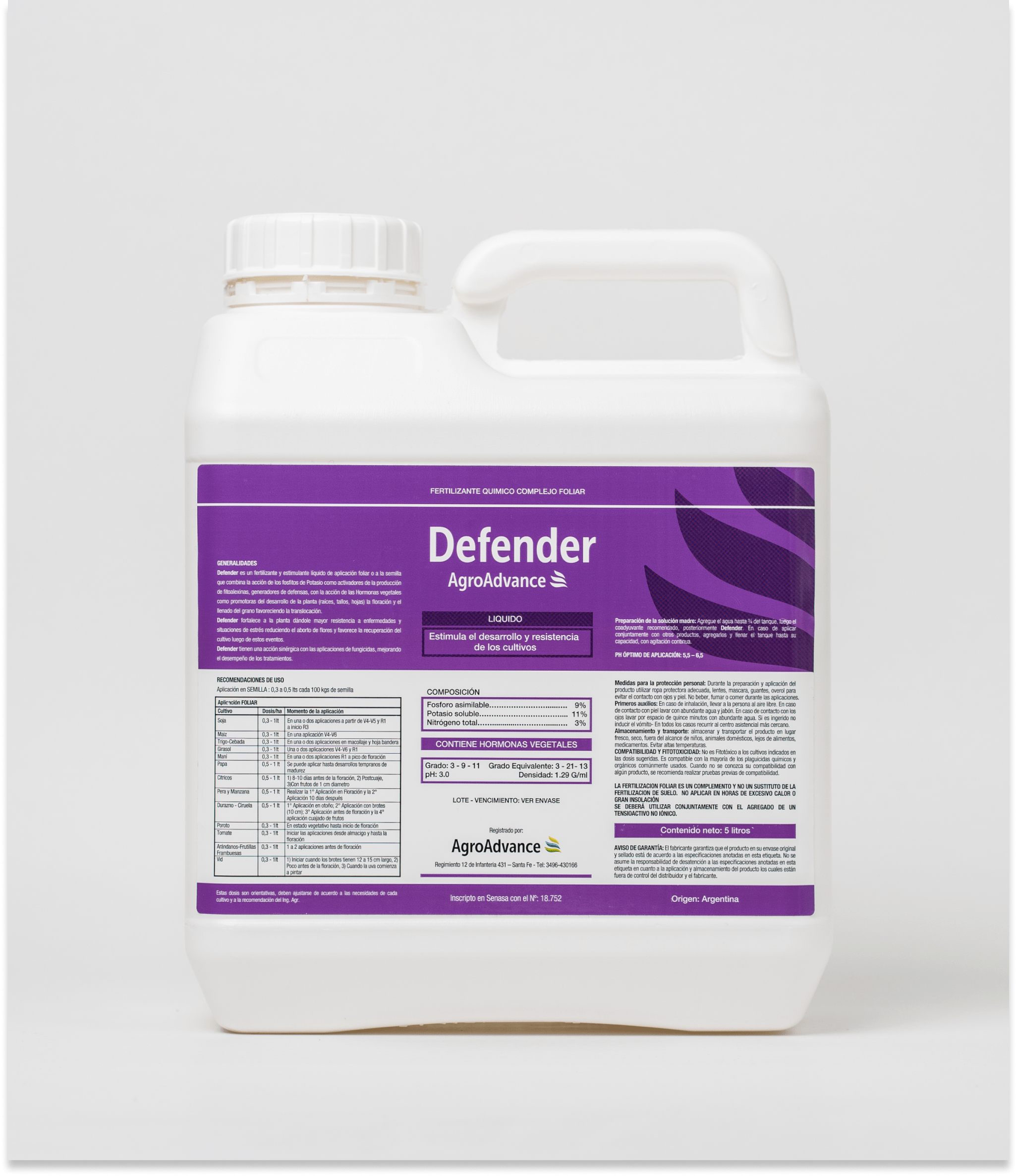 Fitoestimulante. Promotor de crecimiento y de generación de defensas de la planta, y fertilizante foliar líquido de alto performance rico en fosfito de potasio y micronutrientes